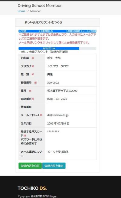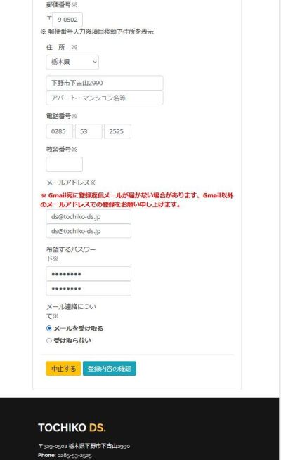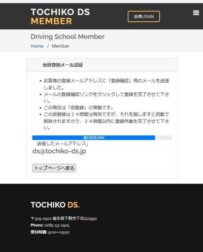 お客様の登録メールアドレスに「登録確認」用のメールを送信しました。